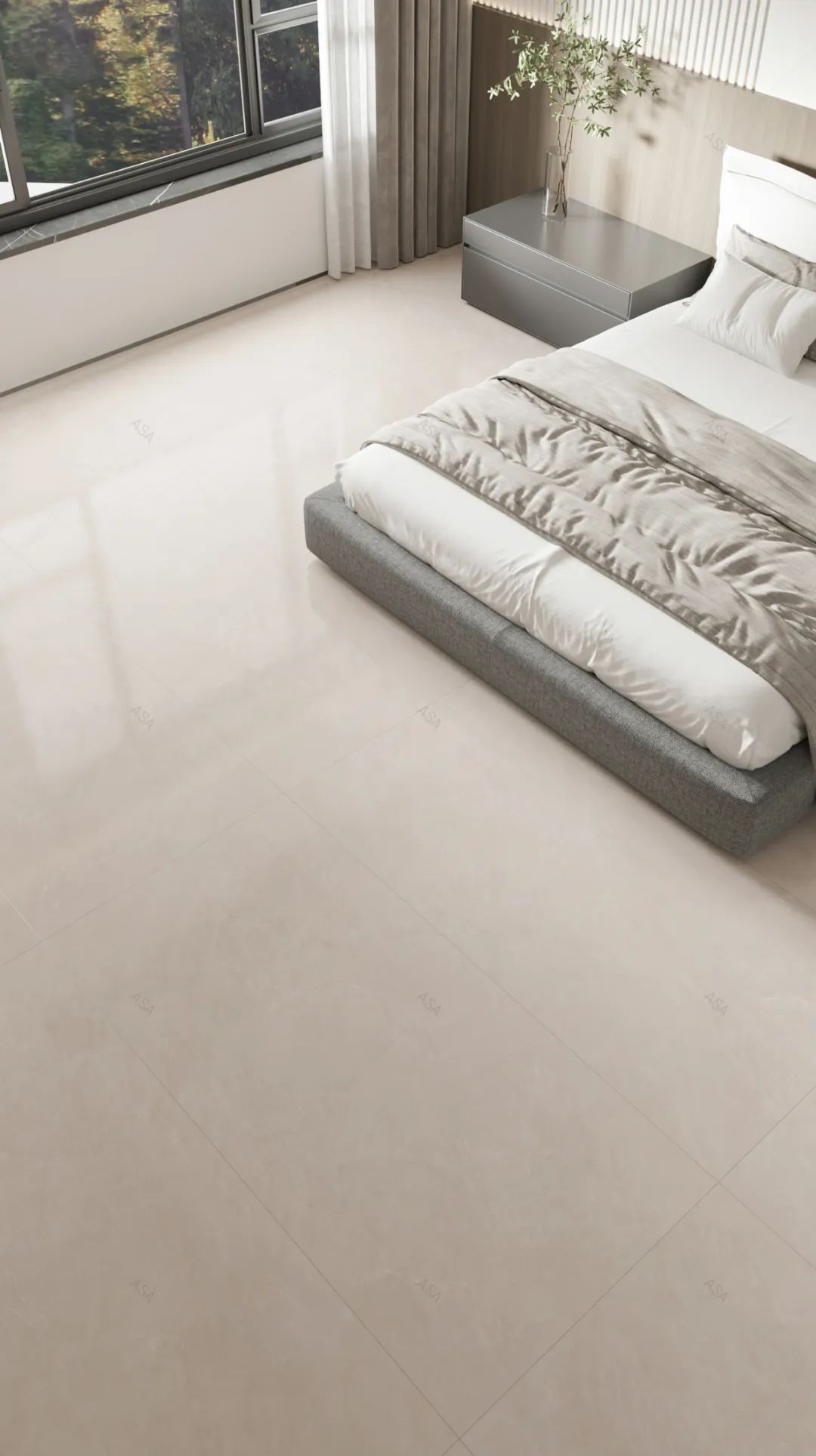 在卧室中铺贴,满足人们回归简单生活的需求,与现代简约风家居搭配完美相融。