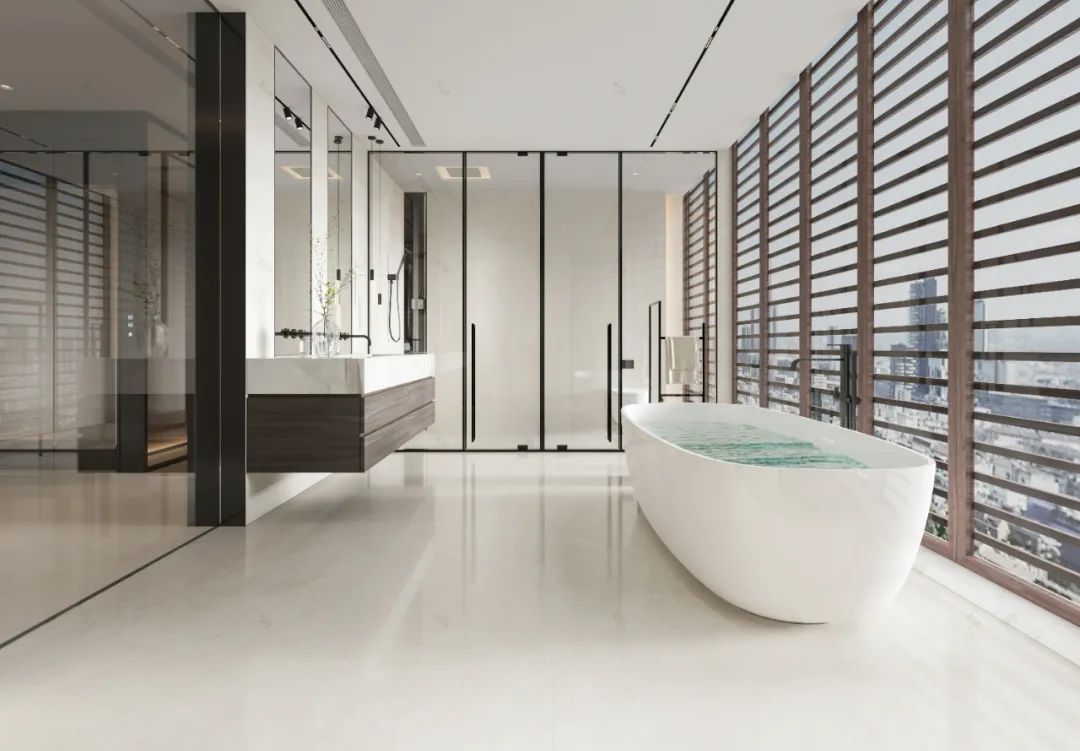 750*1500mm大规格,缝隙小,使用过程中抗污耐脏,清理起来非常方便。搭配白色系马桶、洗手台等软装,低调中彰显生活品质。