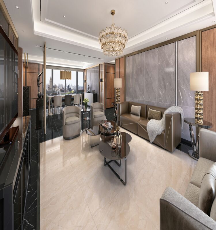 撷取古希腊宫廷的古典米黄色调,配合深浅不一的柔云团花纹理,静泊深远,彰显高贵与典雅,适合现代简约、新中式、新古典等风格。