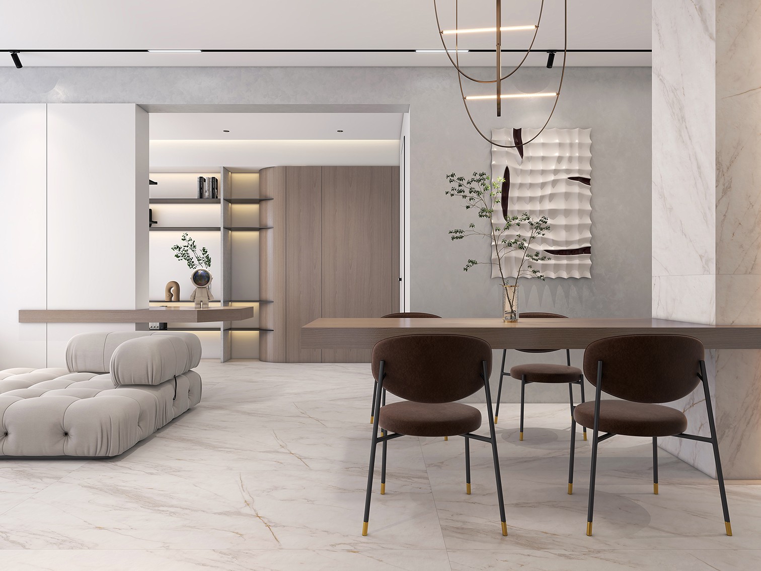 「云镜」以黄山云海景观为灵感,用云雾缭绕的云海打造人间仙境般的和煦氛围。产品采用亚91看片免费在线“云感工艺”刻画,将起伏流畅的山脉与云海的走向纹理深度还原在瓷砖上,打破传统抛釉砖质感单一的局限,还原天然自然风貌,打造精致、奢华的视觉空间氛围。